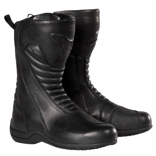 The Tech Touring Gore-Tex boot provides the rider with a CE certified all weather riding boot that is robust, waterproof and secure for the toughest riding conditions. Utilizing a Gore-Texâ membrane it provides the perfect year round boot for the touring or commuter rider looking for a product to cover all prevailing conditions. Constructed using full grain leather bonded with a Gore-Tex® membrane for the ultimate in waterproof performance Fitted with instep and Achilles flex zones which work together to provide the rider with freedom of lateral movement The boot features a host of safety features including dual density ankle protection, internally molded shin, heel and toe reinforcements and a PU toe shifter panel which provides feel and protection around the fore-foot and prevents pinching when changing gear The Gore-Tex® membrane provides a 100% waterproof lining whilst maintaining excellent levels of breathability, providing the perfect boot for year round riding Complex multi layer construction consists of full grain leather outer and a protective knit layer bonded above the main Gore-Tex membrane Under this a non-woven layer sits above the internal lining, ensuring that the foot stays dry and comfortable at all times The Gore-Tex membrane contains 9 billion microscopic pores per square inch, which are large enough to allow heat vapor out but, being 20,000 times smaller than a water droplet, makes the membrane completely waterproof from the outside A rear reflective insert provides extra visibility at nighttime Alpinestars exclusive vulcanized compound oil resistant sole provides a seamless connection to the boot and provides optimum grip, performance and durability