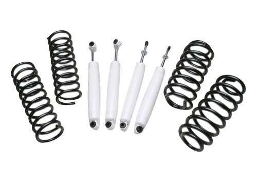 Replace your coil springs and level your Grand Cherokee with this 2.5" front 2" rear coil spring lift kit. These springs will give you more clearance for larger tires and help get rid of the tail in the air look that many WJ's have. This kit is a good option for those with the heavier V8 engine when the standard 2" front kit isn't enough. Longer shocks are also included with this kit.